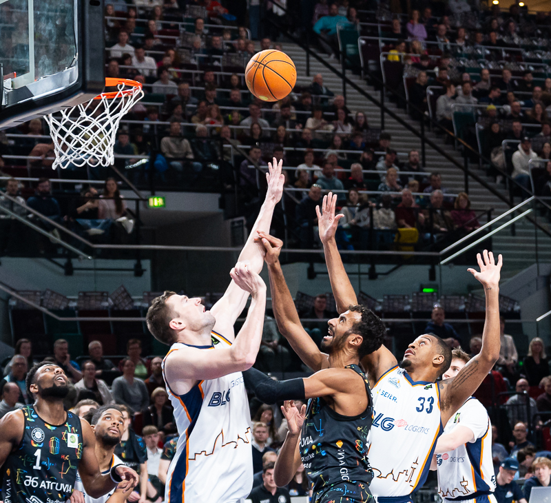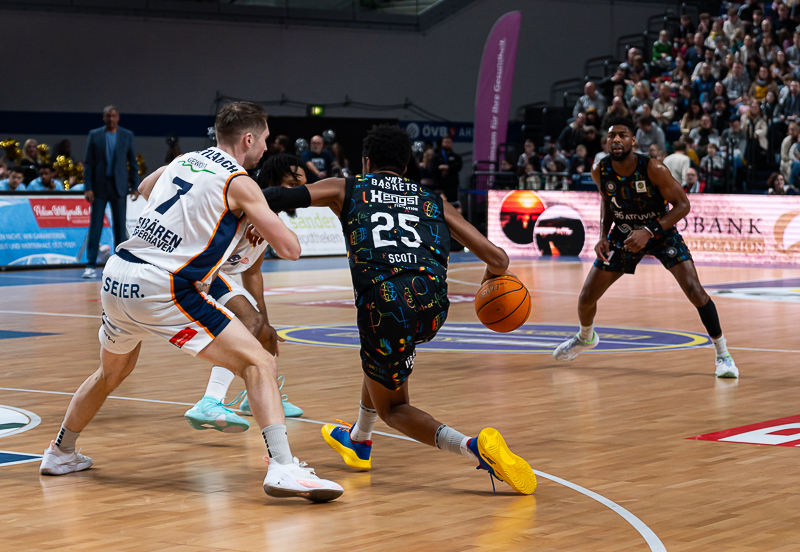 Trotz der Rekordzuschauerzahl und der deutlichen Mehrheit an Eisbären-Fans in der ÖVB-Arena ließen sich die Gäste nicht beirren und kamen gut ins Spiel. Aber auch die Seestädter gaben in der Anfangsphase ordentlich Gas in der Offensive. Robert Oehle sorgte mit seinem Treffer zum 2:1 für die erste Führung der Gastgeber. Es folgte ein spannender Schlagabtausch, bei dem die Eisbären durch Dreier von Nick Hornsby, Aaron Cook und Lenny Larysz die Baskets nicht von dannen ziehen ließen. Mit einem leichten Vorsprung der Gäste und einem Spielstand von 20:24 endete das erste Viertel.