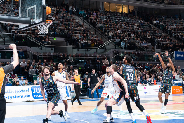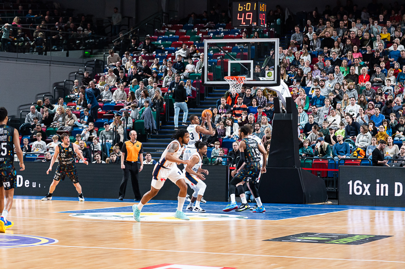 Und der Andrang war mit 7.528 verkauften Tickets am Ende noch höher als erwartet. Durch die lange Schlange vor dem Ticketcenter auch noch kurz vor dem regulären Tip-Off um 15 Uhr wurde das Spiel um zehn Minuten nach hinten geschoben.