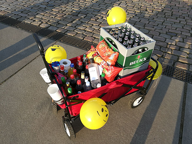 Wer möchte, kann zudem ein wenig Deko wie Luftballons, Firmenlogos o. ä. besorgen, um den Bollerwagen optisch „aufzupimpen“.