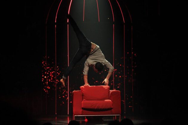 Der gebürtige Bremer Andalousi Elakel beherrscht die Kunst der Equilibristik auf bemerkenswerte Weise. Mit vollendeter Körperbeherrschung wechselt er von dynamischen Sprüngen zu eleganten Handständen und das alles mit einem einfachen Sessel als Requisit.