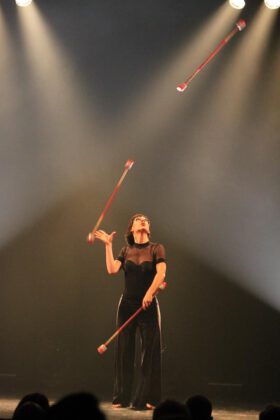 Ofelia Grey aus Litauen bezaubert das Bremer Publikum mit ihrer eleganten Stabjonglage und ihrer ausdrucksstarken Performance.